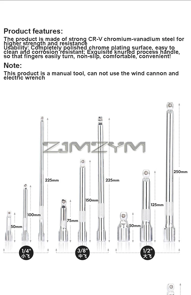 Crafted from high-quality chromium-vanadium (CR-V) steel, each extension bar offers excellent durability, corrosion resistance, and long-lasting performance under heavy use. The ball head design allows for slight angle movement, giving you better access and improved efficiency when working in confined areas.